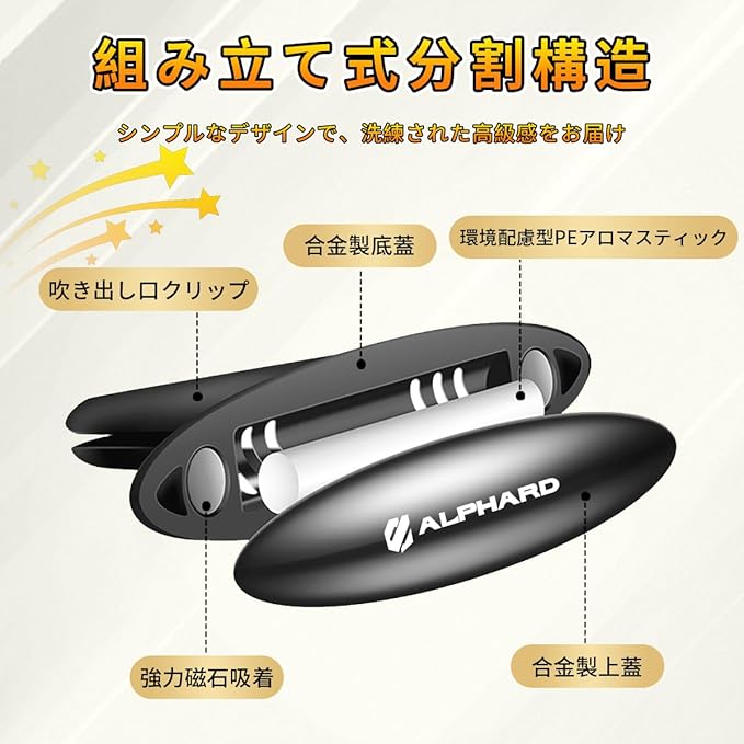 【専用ロゴ付き オシャレなデザイン】この車用芳香剤にはALPHARD 専用ロゴが印刷されています。ユニークなロゴとオシャレなデザインを持ち、愛車のインテリアと簡単に調和させることが可能です。アルファード アクセサリー パーツ。
