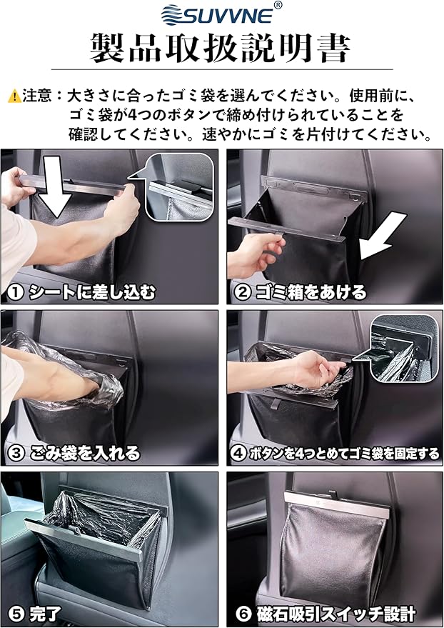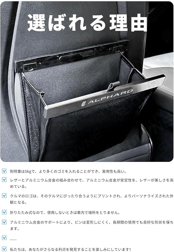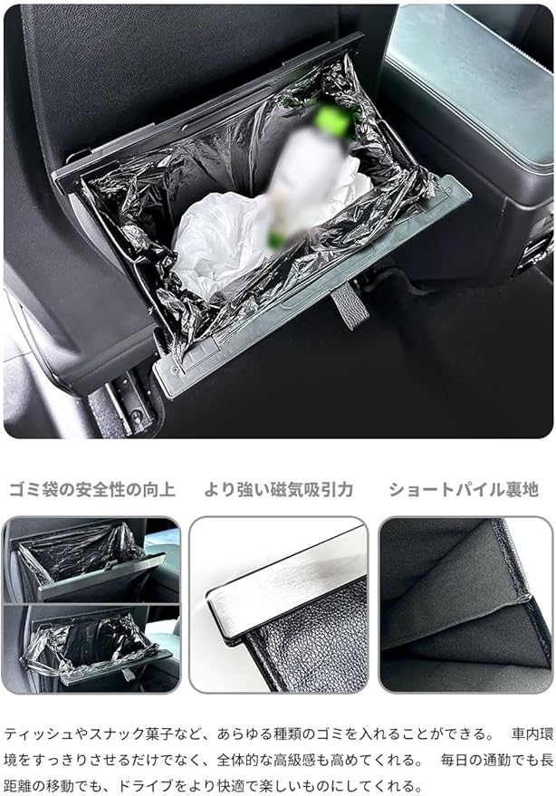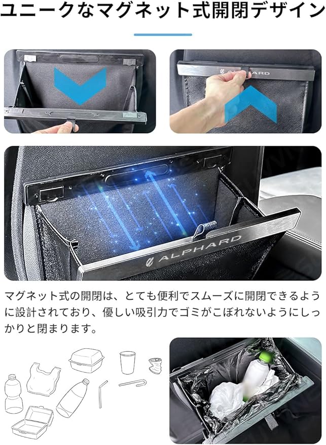 ALPHARD 40系 SUVVNE(スヴニ) 新型車用ゴミ箱 収納 小物入れ 省スペース 吊り下げ カー用品 日本語説明書付き(ブラック)