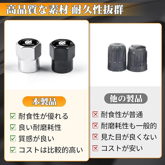 アルファード 適用 タイヤバルブキャップ ブローオフバルブ 車 漏気防止 防塵 ALPHARD 20系 30系 40系 対応 エアバルブキャップ カー 防錆 腐食防止 ミニキャブ タイヤバルブ ドレスアップ 質感(アルファード 適用,シルバー・4個)