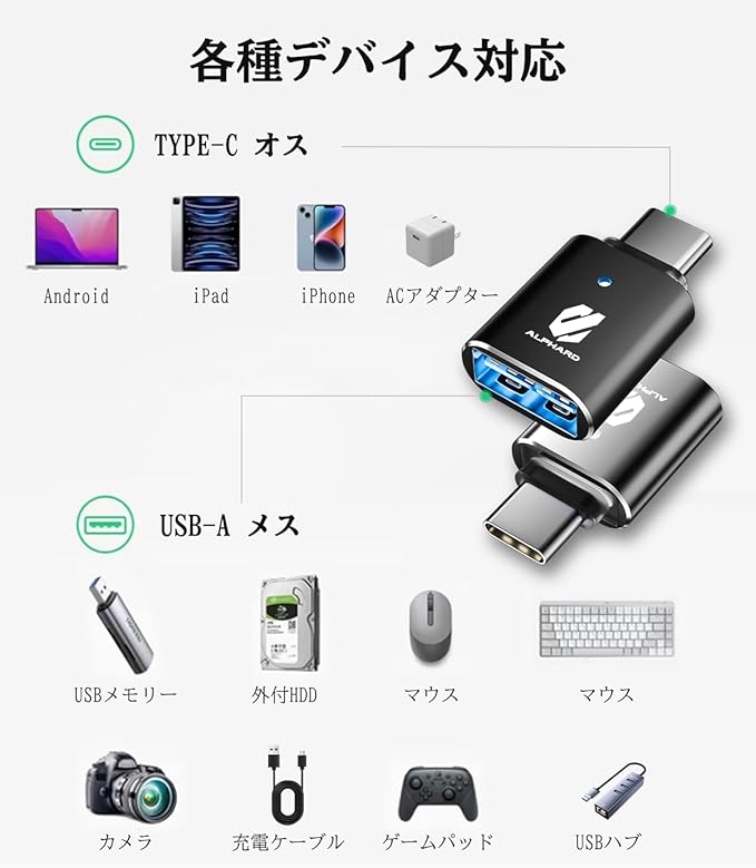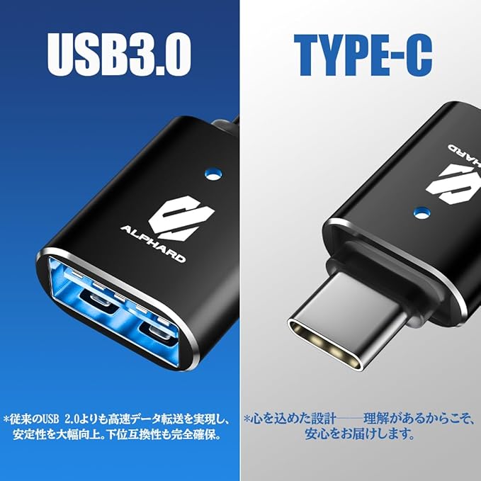 【瞬時反応 & 接続安定】 こちらのUSB TYPE-C 変換アダプタは、アルファード専用グッズとなります。最大5Gbps通信で写真/動画/音楽のデータ転送を高速化。マウス/キーボード操作の遅延を実感できないレベルに低減し、急速充電対応のiPad・MacBook利用時も安定した信号伝送を維持。