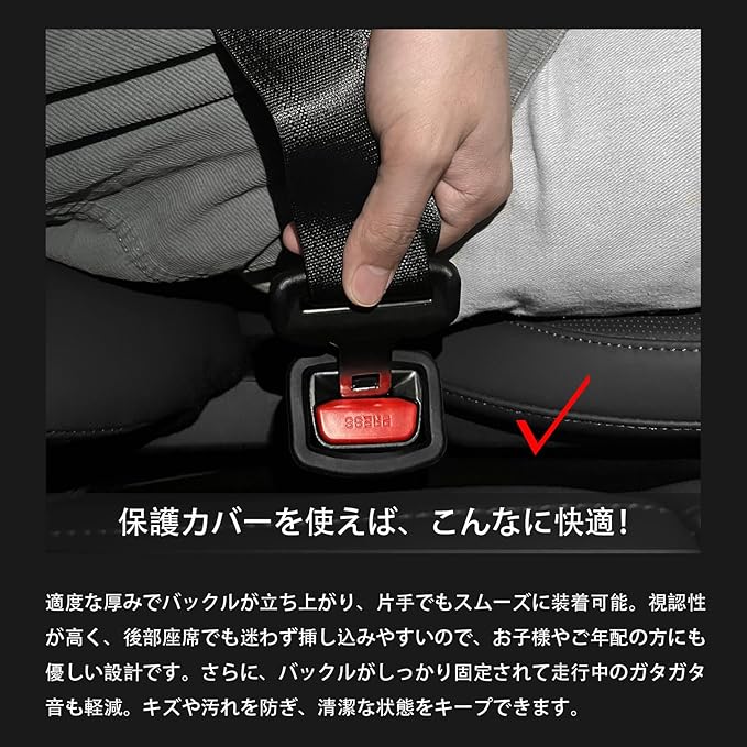 バックルの傷や汚れを防ぐだけでなく、運転中の不快な「カチャカチャ音」も軽減。