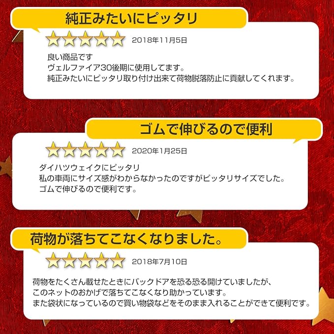 トランクの収納スペース確保、荷物の固定、落下防止におススメのラゲッジネットです。