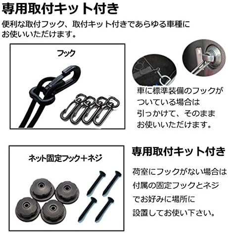 USK STORE ラゲッジネット アルファード ヴェルファイア 20系 30系 40 90㎝ 取付キット フック付 トランクネット 汎用 荷物の固定 落下防止