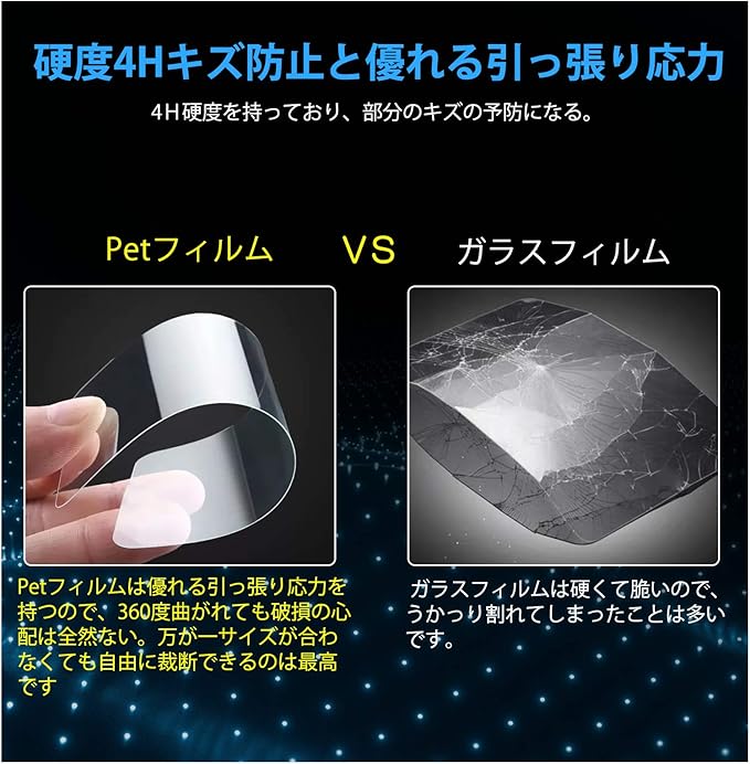 【キズ防止・汚れ防止・貼付簡単】6H硬度を持っており、部分のキズの予防になる。汚れ防止加工で指紋、水分や油など残りにくい。静電気吸着タイプで張りつけ易い(気泡も入りにくい)。位置出しがしやすく、気泡が入っても、はがして貼ってを繰り返せるので、綺麗に貼れます。【2枚保険】失敗した場合に備えて2枚同封されています。失敗しても安心です。