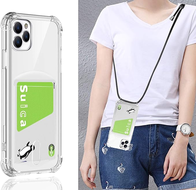 Pelanty for iPhone 11 Pro Max 縄掛けケース for iPhone 11Pro Max 背面カバー クリアケース 柔軟 シリコン 透明TPUバンパー ICカード収納 ネック ショルダー ストラップ付き アイフォン11Pro Max 落下防止 衝撃吸収 指紋防止 薄型軽量 (縄掛け-透明)