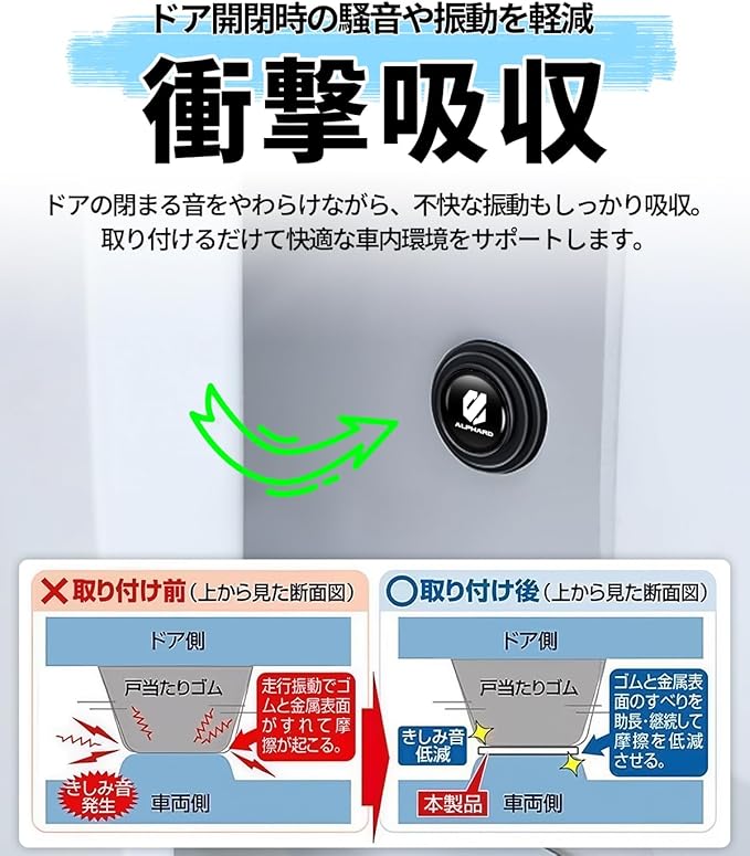 【衝撃吸収】ドア開閉時の振動を効果的に低減できます、車用 ショックアブソーバー を装着された後、振動を吸収し、中古車のドア周りの振動を大幅に軽減します。車 ショック 運転中のドア周りの異音を軽減します。