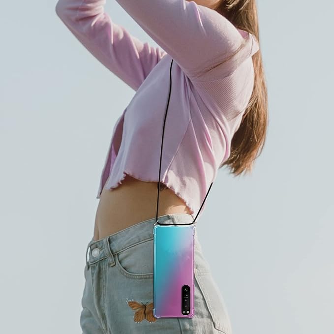 CQTMYWL 対応 ケース 13 Pro Max 用 クリア ショルダーストラップ TPU 透明 カバー 耐衝撃 軽量 薄型 スマホショルダー 肩掛け 紐付き 斜めがけ ピンク-绿 08007-13PM-03