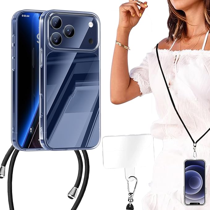 BonwFzin For iPhone 17 Pro ケース ショルダー クリア アイフォン17プロ スマホケース 透明 iPhone17Proクリアケース ストラップ 首がけ カバー 適用 軽量 薄型 肩がけ 斜め掛け 耐衝撃 ストラップ付き バンパー 携帯カバー 取り外し可 組合せ式