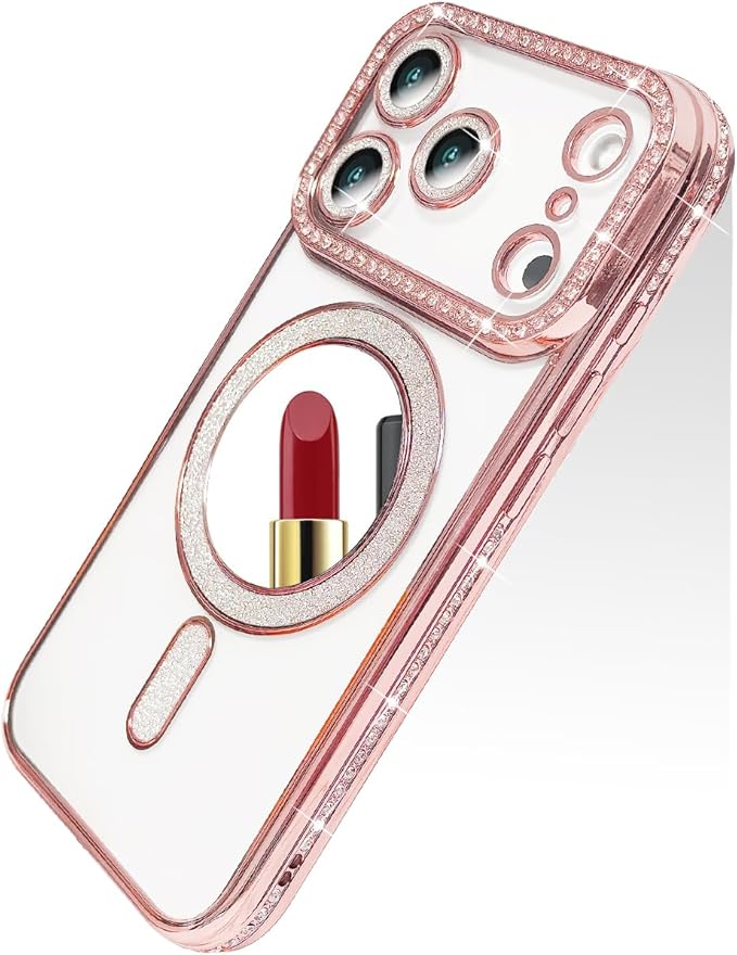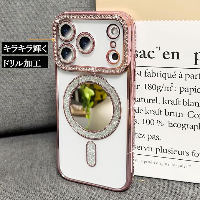 スマホケース 対応 iPhone 17 Pro Max ケース MagSafe対応 クリアケース 透明 メッキ加工 ドリル きらきら ブリンブリン かわいい ストラップ穴あり おしゃれ 軽量 薄型 衝撃吸収 女性 アイフォン17プロマックス 携帯電話カバー (ピンク, iPhone17 Pro Max)