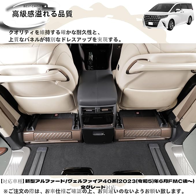 適用 新型 アルファード40系 ヴェルファイア 40系 カスタム アクセサリー 専用 2列目収納ボックスパネル 内装パーツ 木目調ブラウン