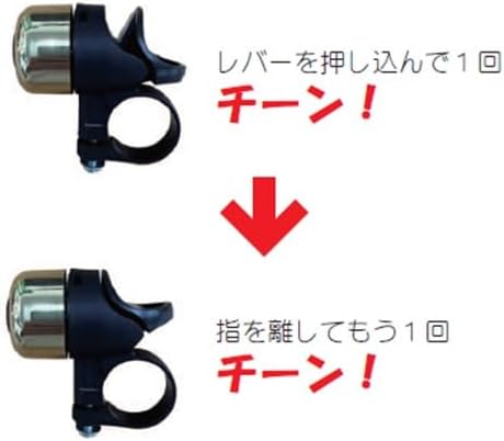 スポーツ車に最適なベル 新設計で一回の操作で2打音に鳴ります。 ハンドル径:22.2用 パッキンを外すと25.4まで太いハンドルに装着可能 幼児用などの細いハンドルに取り付ける場合は テープ等を適当に厚みで巻いて装着ください