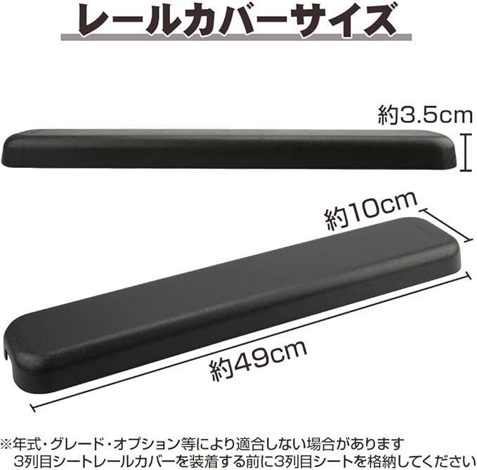 【セット内容】シートレールカバー 2点 【サイズ(約)】49cm 10cm 3.5cm 【カラー】ブラック 【材質】ABS 【適合車種】新型 アルファード40系/ヴェルファイア40系 ※ご購入前に必ず適合車種をご確認ください。