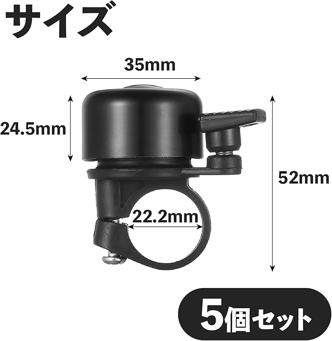 自転車ベル 【5個】 黒色 取付径φ22.2mm ワン部直径φ35mm