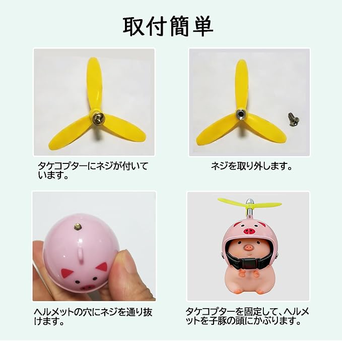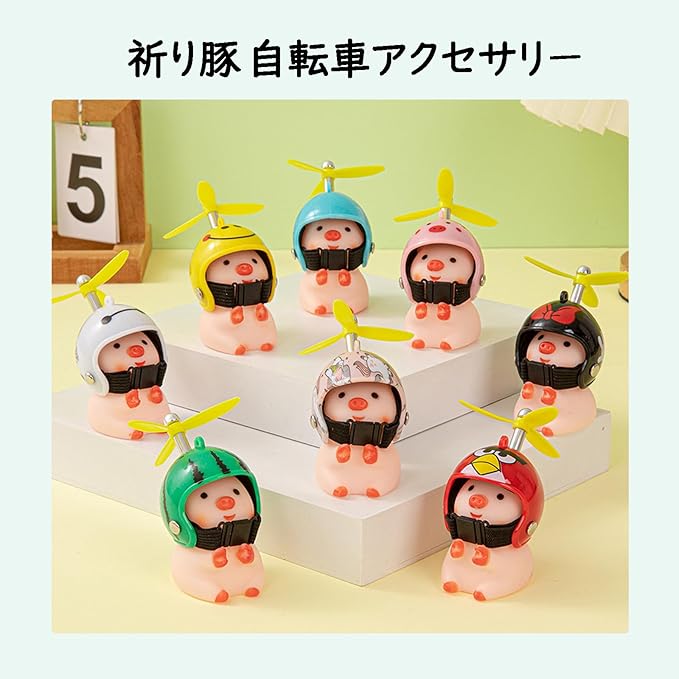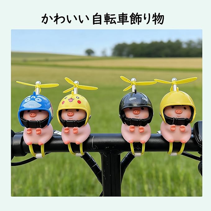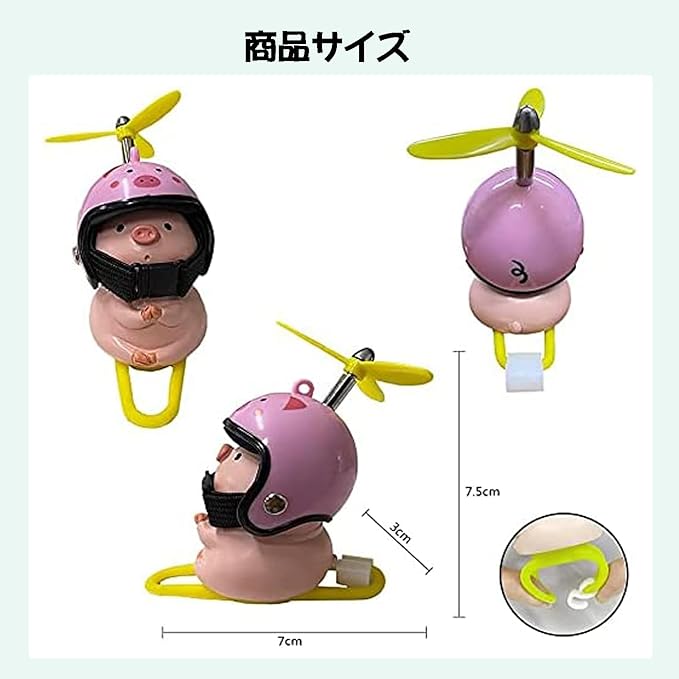 「装飾効果」自転車用アクセサリー、ハンドルにつけ、自転車を装飾します。自転車に乗る時、子豚ちゃんはそばにいるから、寂しくないです。その上、頭の上のタケコプターはクルクルして面白いです。つまらない時間も楽しくなります。