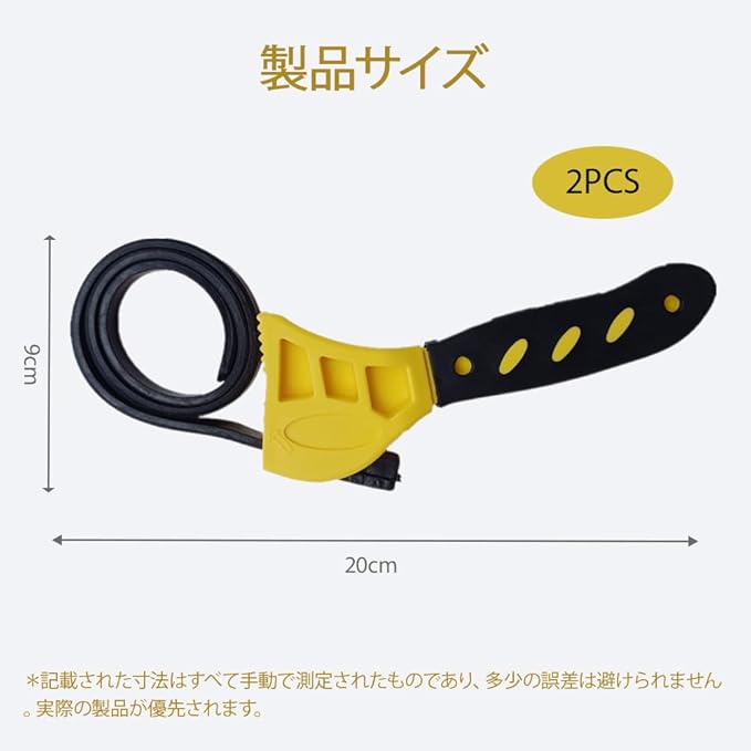 ベルトレンチ ラバーベルトレンチ オイルフィルター2本入り 多機能 滑り止め 自転車 水道 整備工具 瓶の蓋 オープナー イエロー