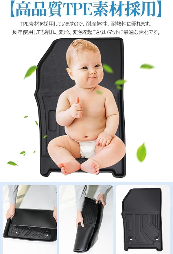 【高品質なTPE素材】このカーマットは環境に優れた素材を採用し、完全に無毒で無臭なので、車内での不快な臭いを取り除くことができます。また、耐摩擦性、耐久性、柔軟性も備えており、変形・劣化が起こりにくいです。防水仕様なので水にも強く、丸洗いができるので水や泥などを気にせず全力で遊んでいただけます。