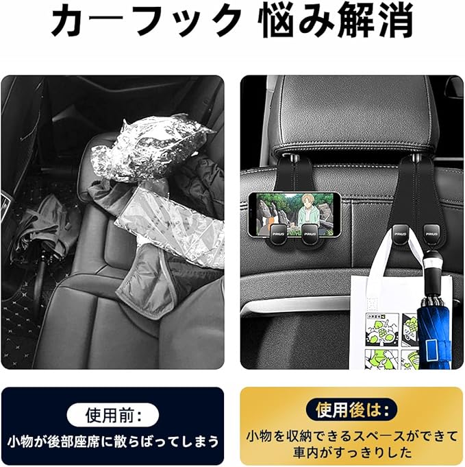 プリウス カー ヘッドレストフック 車 シーフック 対応 Prius 60系 50系 40系 30系 20系 便利グッズ 後部座席 収納 整理 インテリア カー用品 内装パーツ