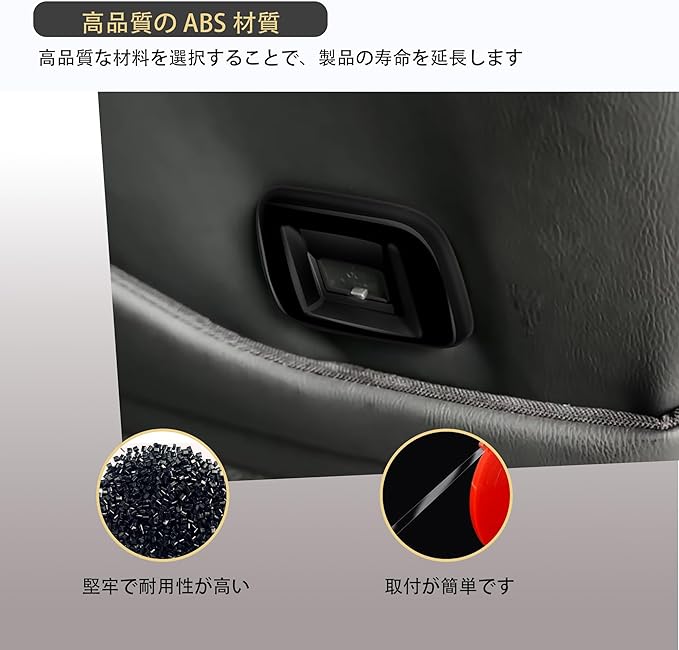 【高品質ABS素材】:高品質のABS素材を採用しており、耐久性に優れています。色あせや変形がしにくく、長期間美しい状態を保つことができます。また、取り付け部位と密着する、ガタツキが生じません。無臭なので、快適なドライブをお楽しみいただけます。