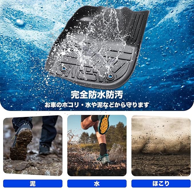 3.【お手入れ簡単な防水仕様】濡れた水着や釣り工具などの水漏れで車内がびしょびしょになるのが嫌?この ヴェルファイア 40系 専用 カー マット は3D立体構造なので水や泥など落としても取り外してすぐに払い落とせます、汚れが気にならず、お手入れも、水拭きで簡単なのでいつでも トヨタ ヴェルファイア 40系の 車内を清潔に保てます。
