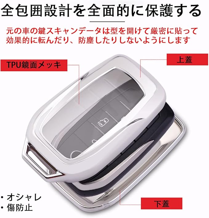 【上質な材料】:キーケースにはTPU素材を採用しており、シリコンよりも固く、ハードケースより柔らかい弾力性のある素材です。つやつやした表面で曲げても割れない新素材です。TPU素材のキーケースはオイル耐性、耐水性、カビ耐性、防塵性があります。自動車の鍵を腐食や破壊からしっかり守られ、鍵の形状を保つことができる。 万が一、鍵が落ちた時、キーケースも鍵が壊されないように保護することができて、着地緩衝の効果があります。手触りが非常に柔らかい。さらに高級感が溢れます。素材・造りの良さで多くの皆様に高く評価いただいています。愛車の専用設計でフィット感抜群です。