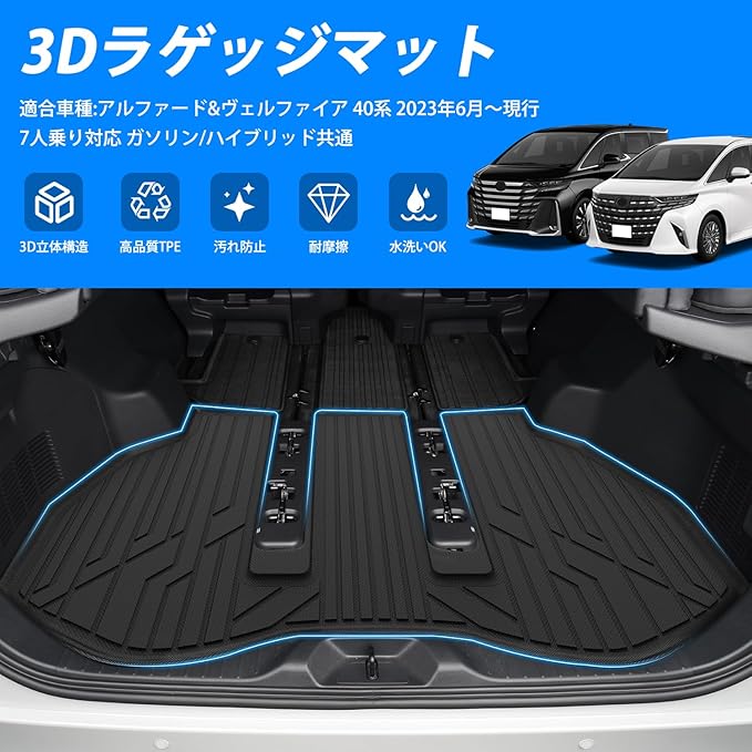 トヨタ アルファード 40系 ヴェルファイア 3D ラゲッジマット 7人乗り対応 ALPHARD VELLFIRE 40系 2023年6月~ AGH4#W AAHH4#W AAHP45W 専用設計 トランクマット カーマット TPE 滑り止め 防水 キズ&汚れ防止 耐摩擦 取付簡単 お手入れ アクセサリー カスタムパーツ 1枚セット