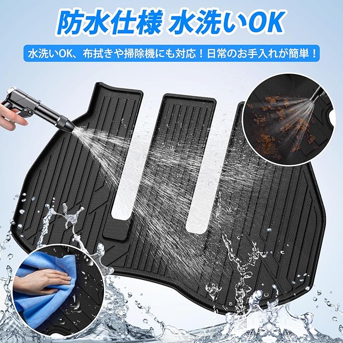 5.【取付簡単】簡単な取り付けで、面倒な手順は不要。置くだけで完了し、洗濯時も素早く外せます。TPE製フロアマットを取り付ける際は、必ず車両の純正マットを取り外してください。※製品は折りたたみ式で梱包されているため、到着後はお湯やドライヤーの温風で簡単に形状を復元できます。「ご注意」ご使用中で気になる点がございましたら、注文履歴→「商品について質問する」よりご連絡ください。ご満足いただけるよう、迅速に対応させていただきます。