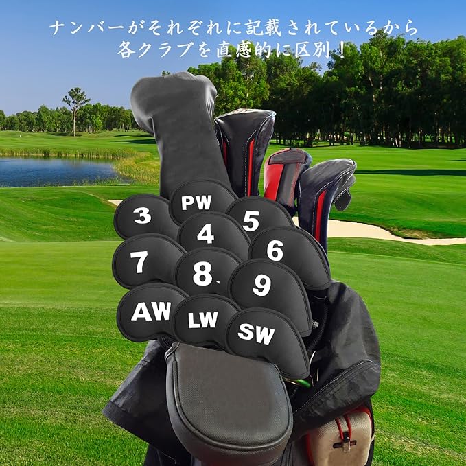 ゴルフアイアンカバー 11枚セット マグネット式開閉 ゴルフヘッドカバー ウェッジカバー ネオプレン素材 軽量 番号付き ヘッド保護カバー LT-018