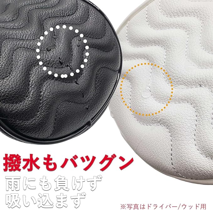 まるで本革のような高品質のPU革を採用、しっかりとヘッドを保護できます。水気の撥水も良く防水も可能です。