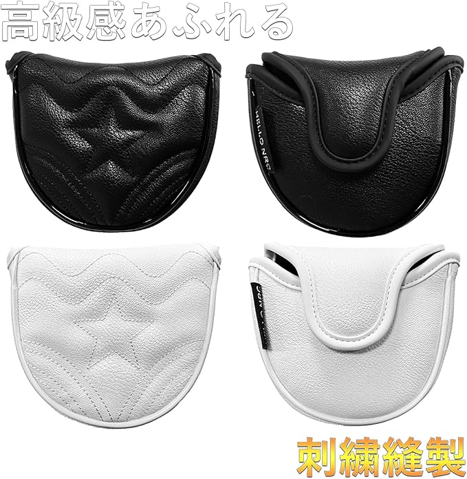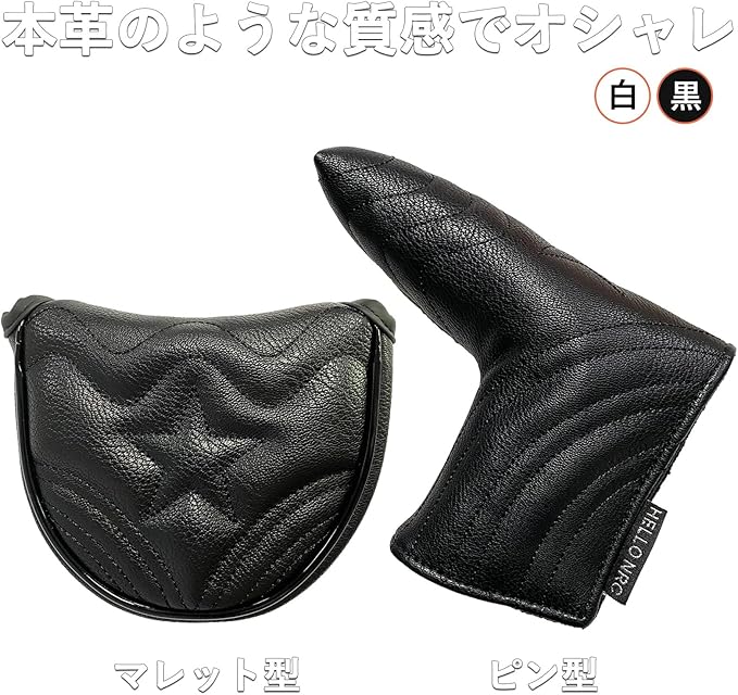 まるで本革のような高品質のPU革を採用、しっかりとヘッドを保護できます。水気の撥水も良く防水も可能です。 マレット(マグネット式) / ピンタイプ(マジックテープ式) パター用 ヘッドカバー
