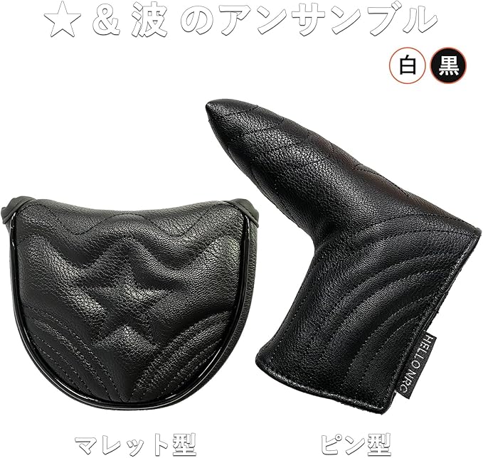 ゴルフ ヘッドカバー パター マレット カバー ピンタイプ ゴルフ ヘッドカバー 単品 波 黒 白 防水仕様 高級 PUレザー