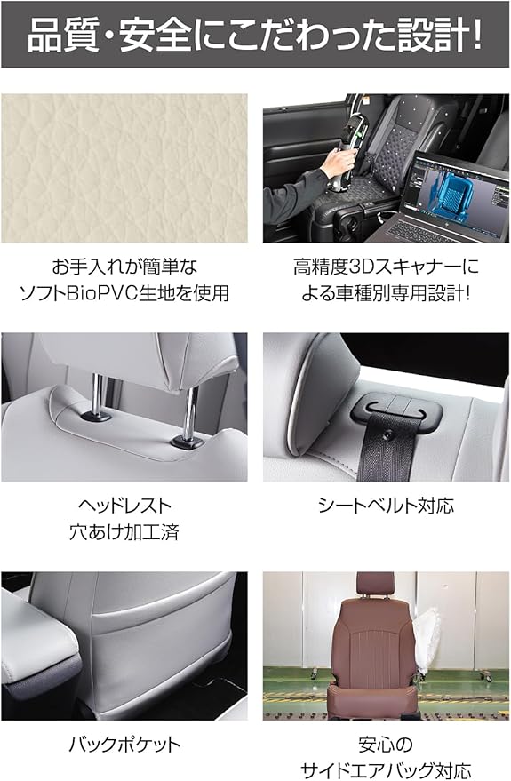 【適合形状】1列目手動シート・2列目6:4分割チップアップシート / ※1列目コンソールBOXカバーは付属しません