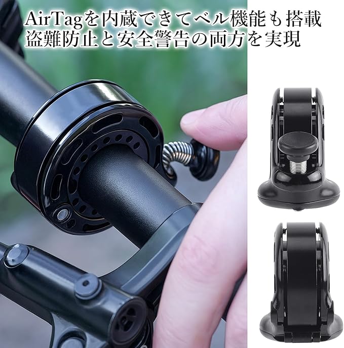 エアタグ用 自転車ベル ベル付きエアタグホルダー 自転車用 盗難防止 サイクルベル一体型 アルミ合金製 防水仕様 ブラック