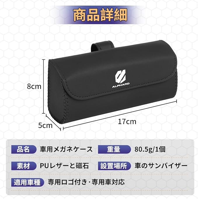【専用ロゴ付き 高級感溢れ】この車用サングラスケースは高品質なPUレザーを使用しており、深みのあるブラックカラーはインテリアの色合いやデザインと自然に調和し、違和感なく愛車の内装に溶け込みます!専用ロゴが付いているため、サングラスケース全体のデザイン性が大幅に向上し、ファッション性のある外観を実現しています。さらに、独特なステッチデザインが、車用眼鏡ケース全体に優れた質感をもたらしています。適用車種:アルファード 20系 30系 40系