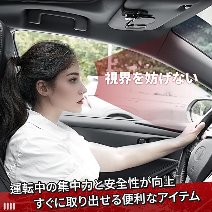 【汎用性が高い カード収納可能】この車載眼鏡ホルダはサングラス、老眼鏡、ブルーライトカット眼鏡をしっかりと固定できます。眼鏡の種類を変更しても新たに購入する必要がないユニバーサルデザインです。【ご注意】:スキーゴーグル(スポーツサングラス)には対応していません。この車載メガネホルダーは、サングラスや眼鏡だけでなく、カードや駐車券などの整理にもぴったりです。