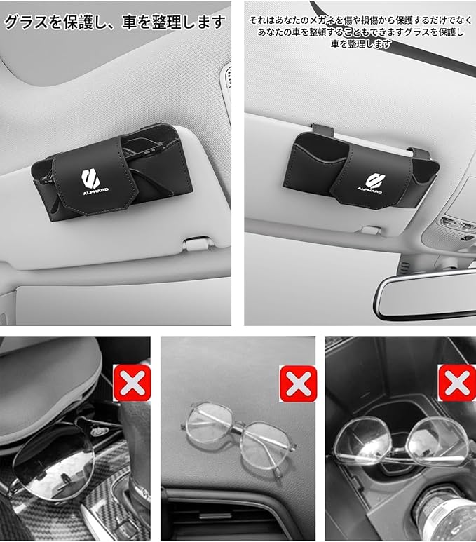 アルファード 専用 サングラスホルダー ALPHARD 専用ロゴ メガネホルダー アルファード 20系 30系 40系 適用 車用 メガネケース 取り付け簡単 眼鏡を保護 サンバイザー レザー製 車 収納 車内 カー用品 アクセサリー 1個(アルファード 専用)