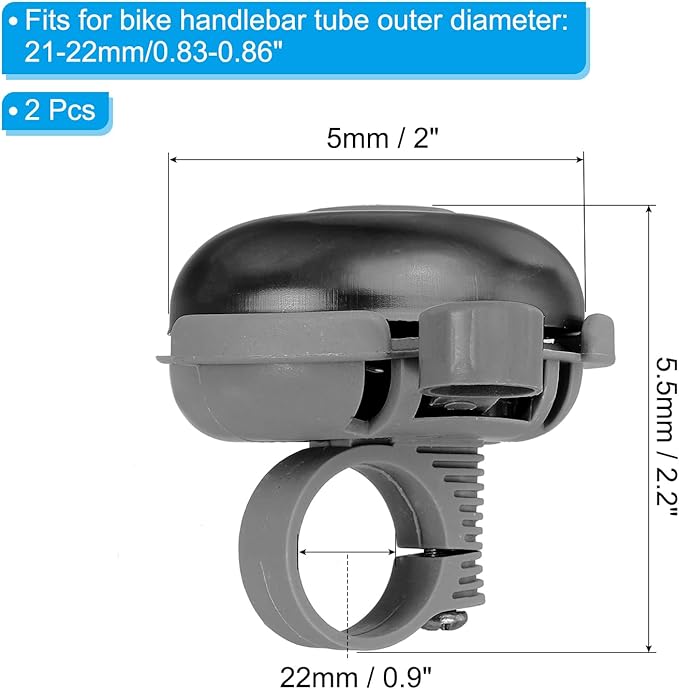サイズ:カラー:黒;素材:合金;サイズ:5 x 5.5cm / 2 x 2.2"(縦x横);適用ハンドルバー外径:21-22mm/0.83-0.86";パッキングリスト:バイクベル x 2