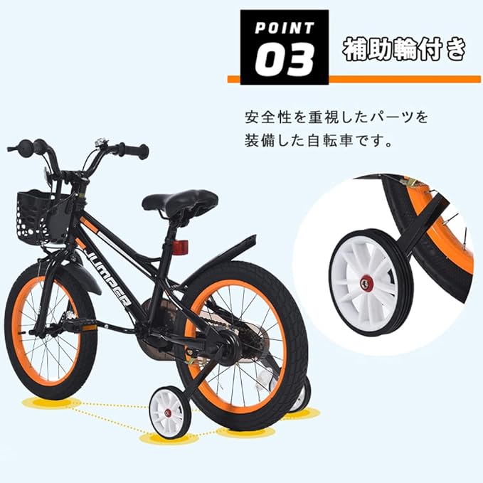 【補助輪付き】安全性を重視したパーツを装備した自転車です。 自転車練習の第一歩 初めてでも安心!