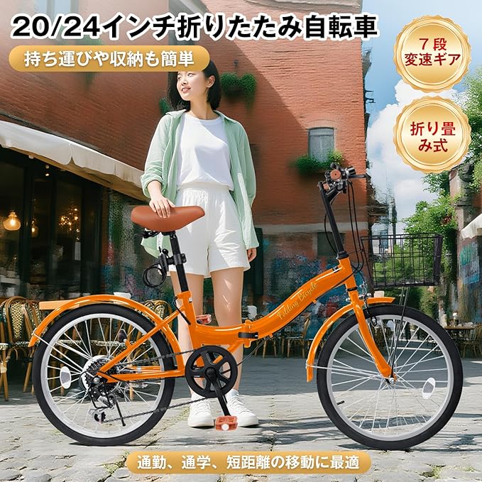 Mixiu 折りたたみ自転車 P-O9A シマノ 7段変速 20インチ/24インチ 折り畳み自転車 軽量 塗装プロセスのアップグレード 高炭素鋼フレーム 持ち運びやすい 折畳み自転車 高さ調節可能なハンドルとサドル 初心者 男女兼用 通勤 通学 街乗り サイクリング 前後泥除け装備 ライト、カゴ、ワイヤーロック、空気入れ付き