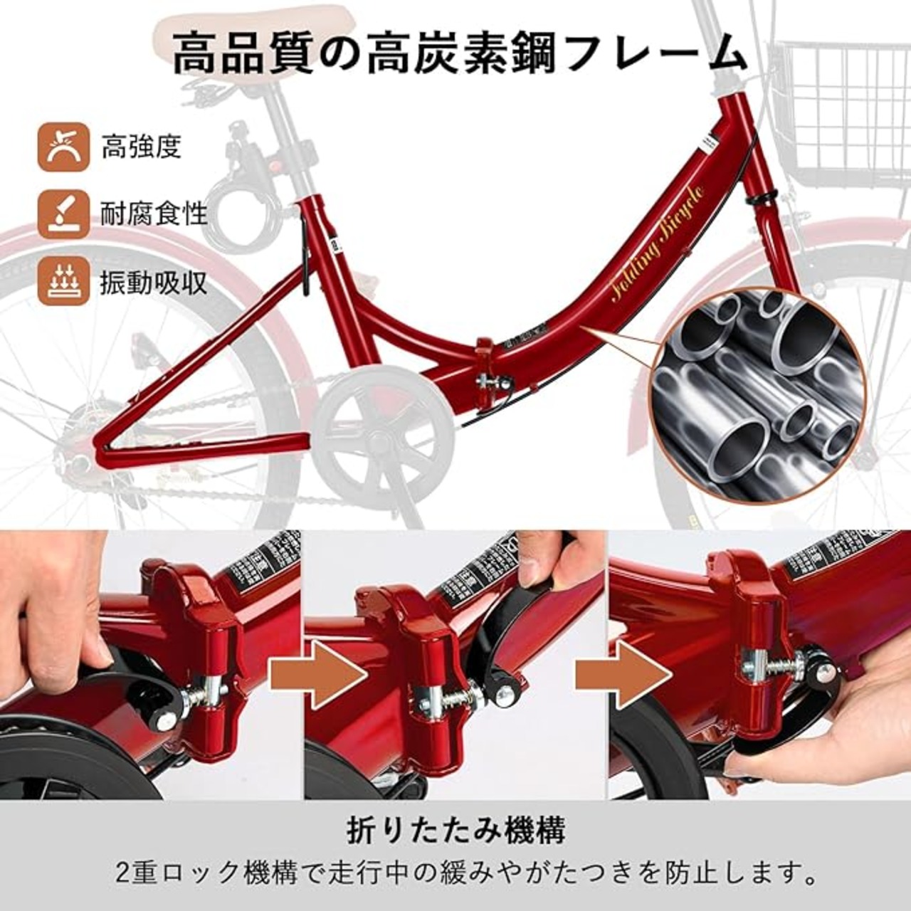 【安心のアフターサービス】折りたたみ自転車はワイヤーロック、ベル、カゴなどを同梱しております。1年保証付きで、ご連絡いただければ誠心誠意対応させていただきます。ご注意:自転車は大型商品のため、Amazonの返品受付センターで返品手続きをお受けできない場合がございます。その際は取扱説明書に記載されている連絡先までご連絡くださいませ。