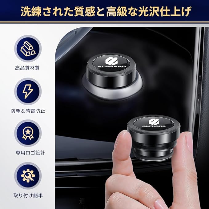 【高品質材質による優れた強度と圧倒的な厚重感、贅沢な高級感を演出】弊社の製品は新型アルファード 40系/30系/20系/10系 全シリーズに対応します。耐久性に優れた高品質材質を採用しており、手に取った瞬間からそのずっしりとした重厚感を感じることができます。一体成型による優れた強度を誇り、時間が経っても色褪せることなく、いつまでも美しい状態を保ちます。高品質材質の特性により、表面は滑らかで光沢のある仕上がりとなり、高級感あふれる外観が車内を一層洗練された印象に変えます。重厚感がありつつも美しく仕上げられており、車内インテリアにアクセントを加えるために欠かせないアイテムです。