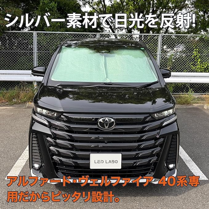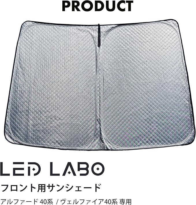 LED LABO サンシェード 車用 アルファード ヴェルファイア 30系 40系 専用 フロント 日よけ 断熱 UVカット 反射 キルト仕様 シルバー ブラック 裏地 99% 紫外線 カット コンパクト収納