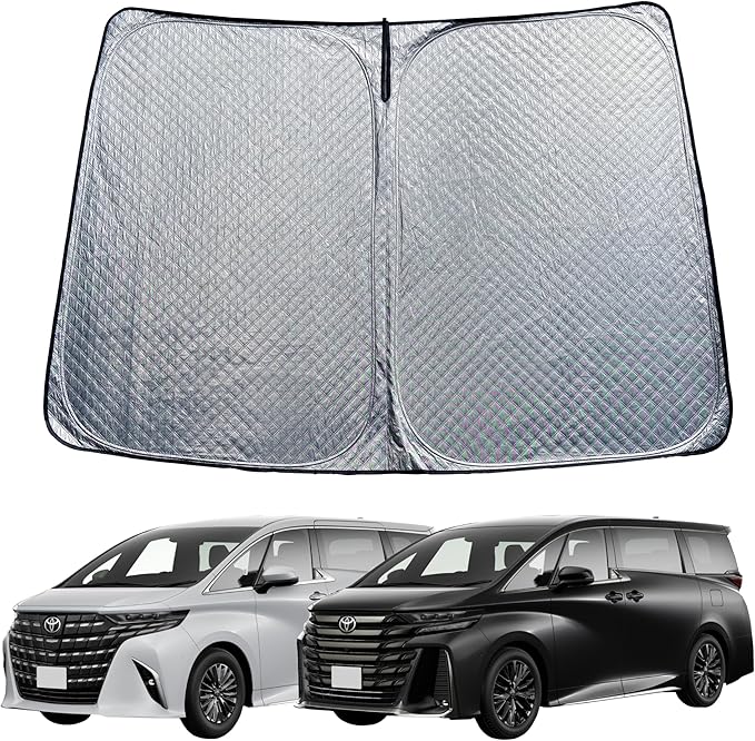 アルファード ヴェルファイア 30系・40系専用の フロント用サンシェードが登場! 表はシルバー、裏はブラック ハンドルやシートが熱くなりすぎないようにサンシェードがおすすめ!