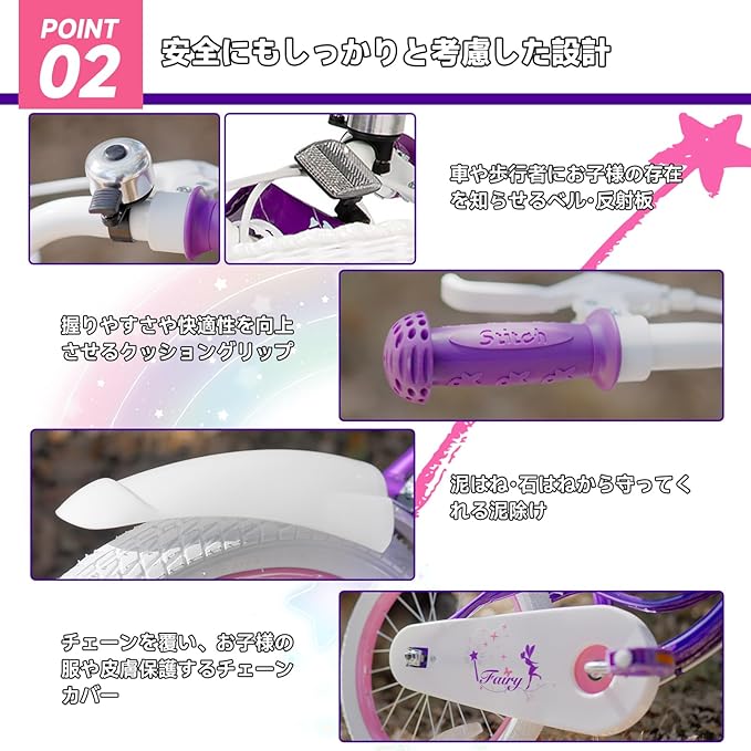JOYSTAR 子供用自転車 12、14、16、18インチ Stitch 前カゴ ベル 補助輪付き キッズバイク バランス感覚 お祝い プレゼント ギフト かわいい 女の子 男の子 グレー ピンク パープル イエロー
