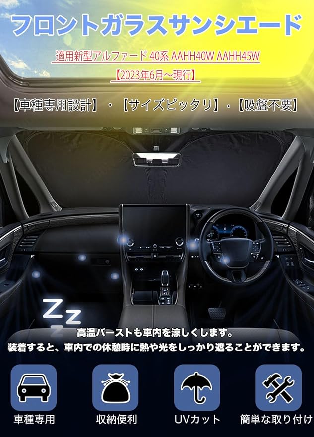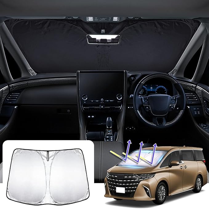 HUDIY(フーディ)新型アルファード 40系 車用 フロントサンシェード 車サンシェード ALPHARD 40系 AAHH40W AAHH45W(2023年6月~現行) フロントガラス 車用サンシェード 遮光性良い シェード 日よけ 車中泊 折り畳み式 内装パーツ 取付簡単 収納袋付