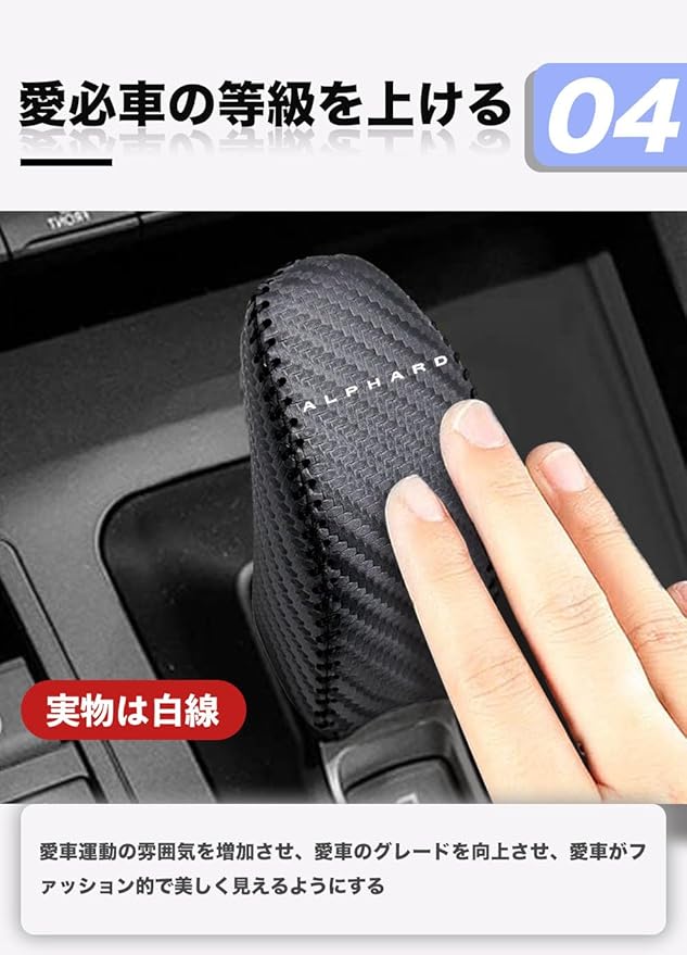 HUDIY(フーディ)新型アルファード 40系 シフトノブカバー (ALPHARD) AGH40W AGH45W 40系 専用PU材質シフトノブカバー 2023年6月~ 内装カスタムパーツ アクセサリー爪キズ防止 取り付け簡単 日本語解説書付き (ブラックカーボン柄)