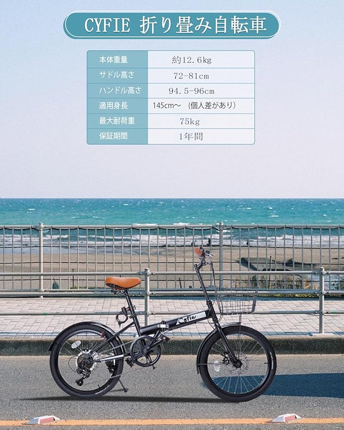 ✅【仕様】20インチ折り畳み自転車。本体サイズ:W1490*D560*H860mm 折畳サイズ:W800 D590 H700cm、本体重量:12kg、サドル高さ:H72-82cm、ハンドル高さ:89-98cm 適正身長:145cm~/適正体重:~75kg ※適正身長はあくまで目安となります。