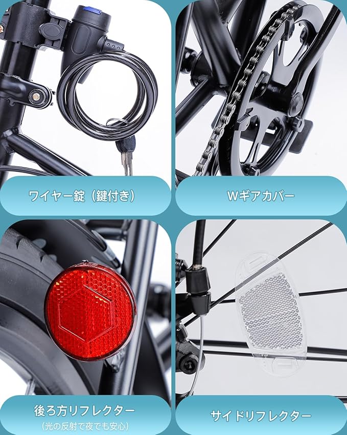 ✅【ディスクブレーキ】この20インチ 折り畳み自転車の前後輪にディスクブレーキを採用すると、キャリパーブレーキよりも調整がよくなります。前後輪と後方には反射板があり、夜間には光を反射して、周りの車に自分の位置を確認させることができます。自転車のベルも装備されており、周囲の危険を知らせることができます