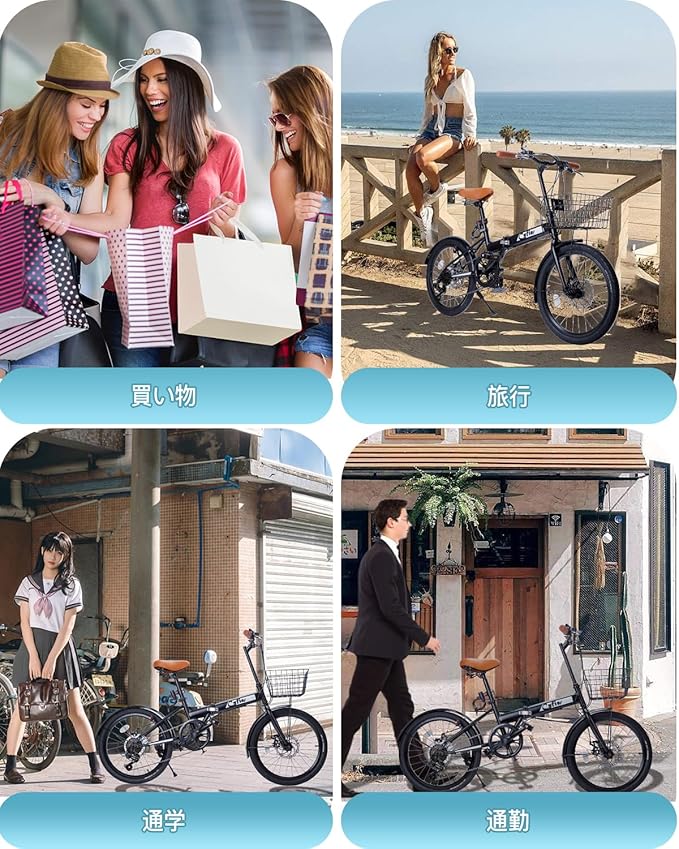 ✅【実用性が高い】弊社の折り畳み自転車は大容量のかごを備えており、通勤、通学、街乗り、買い物にも非常に便利で、荷物や購入したものをかごに入れて、両手の負担を軽減することができます。