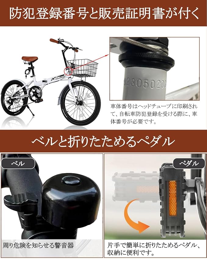 【95%完成状態で発送/簡単組み立て】 お客様にご対応いただくのは、以下の2ステップのみ。 ① サドルとハンドルを差し込んで取り付ける ② カゴを取り付ける ※ご注意 組み立てには一定の技術が必要です。説明書をよくお読みの上、手順に従って正しく組み立ててください。 説明書には取り付け動画のQRコードが付いています。動画もご参考ください。