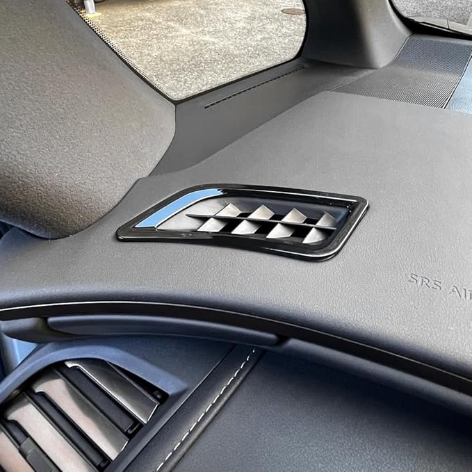 フロントダッシュボード上部のデフロスター(吹き出し口)のガーニッシュです。ピアノブラックの輝きが個性的な印象を演出します。